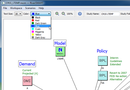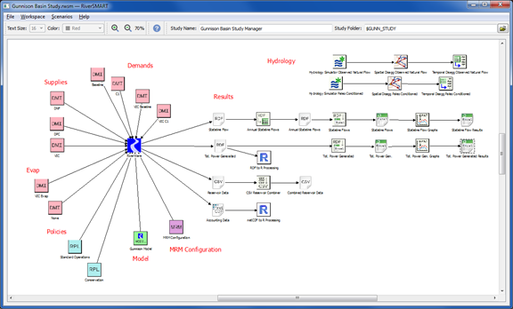 Note:  The combination of DMIs, models, MRM configurations, and RiverWare policies are user-selectable through the Scenario Organizer.