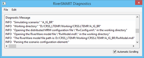 Diagnostic messages are displayed in the RiverSMART Diagnostics window, and they are color-coded as follows: