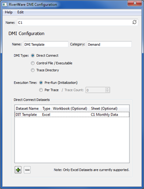 Figure 2.2  Sample RiverWare configuration of Excel Database DMI