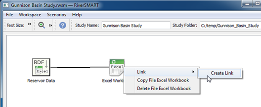 The RiverSMART workspace is populated with events, files, and links to create a study. These study building blocks are discussed in the following sections.