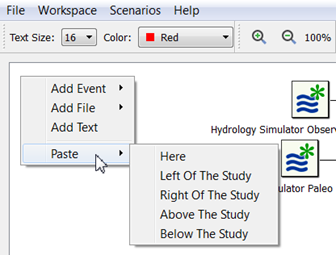 To paste items from the system clipboard to the current study, right-click the workspace and select one of the following options from the shortcut menu.