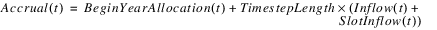 For each timestep in the accounting period in which there are the required knowns, solve for Storage(t) when Storage(t-1) is known and time(t) is not the Begin Accrual Date.