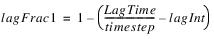 • The lag is broken into an integer number of timesteps (lagInt) and two fractions (lagFrac1 and lagFrac2) representing the flow that occurs on the two adjacent timesteps.