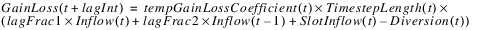 2. If the tempGainLossCoefficient is non-zero (and Lag Time is NaN), Gain Loss is calculated as a function of the inflows. Remember that Gain Loss is a volume.