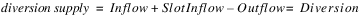 There must be exactly one diversion supply. Therefore, the Diversion slot value is identical to the value in the diversion supply. Lag, gain loss, and return flow are not allowed. This is checked at run time.