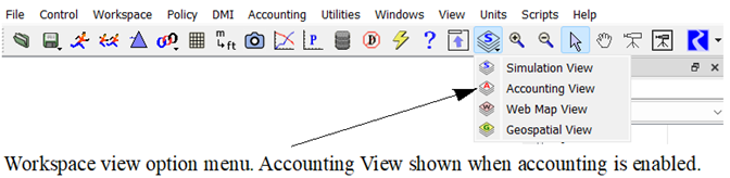 If accounting is enabled, the Accounting View option is displayed in the Workspace View button menu as shown in