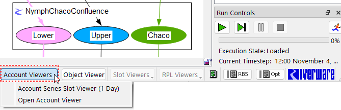 On the bottom of the workspace, use the Account Viewers menu button to open either the Account Series Slot Viewer or Open Account Viewer as shown in the screenshot below.
