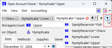 Note: The Open Account Viewer can always be opened from the button menu, even if the viewer is empty. The Account Series Slot Viewer option is only shown when it contains slots.
