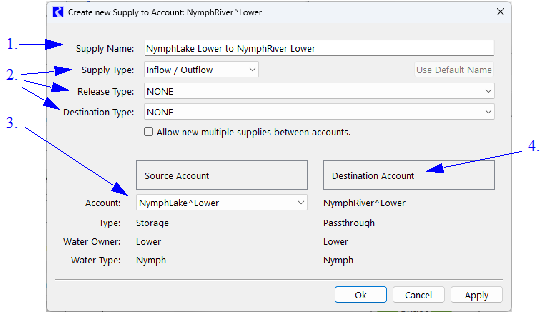 Figure 3.24 illustrates these steps. Right-click on the source account and create the supply. The default supply name and properties are used. If you desire to change these, you must use either the