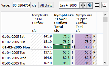 The following summary statistics are displayed for the highlighted selection: Sum, Average, Minimum, Maximum, and Range.If the slot entity shown is a Flow slot, then the summary area also shows the sum of the selected cells converted to a volume.