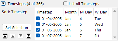 List All Timesteps toggle to show all of the timesteps in the model. Use the arrows