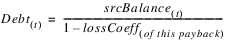 Description: For each payback source, the exchange maintains a slot Debt to keep track of a debt associated with that payback source. It is the amount that would be necessary in the given supply to pay off the total debt including any loss.
