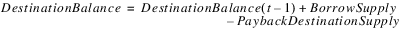 Description: The Destination Balance is the previous Destination Balance plus the value in the Borrow Supply minus the value in the Payback Destination Supply.