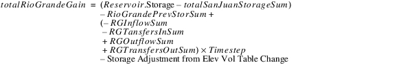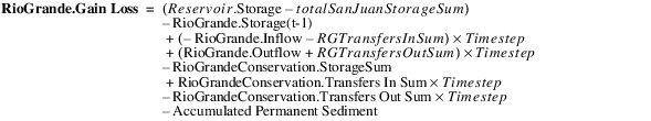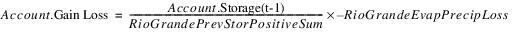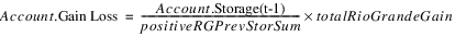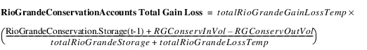 This total gain loss is distributed to the accounts based on estimated storage compared to the total conservation storage. This allows the conservation accounts to solve. In general, the Gain Loss for the RioGrande account can be calculated.