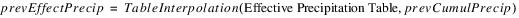 Information: The total accumulated precipitation depth for the month is used to calculate the accumulated effective precipitation for the current day and the previous day. The difference is the Effective Precip for the current day. For a 1 Month timestep, the effective precipitation is calculated from the total precipitation for the current timestep.