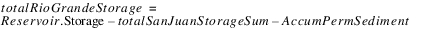 Description: The sum of the total San Juan storages, Carryover Content, Accumulated Permanent Sediment, and Rio Grande Conservation storage.