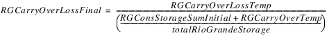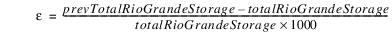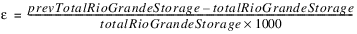 If totalRioGrandeStorage is zero, then prevTotalRioGrandeStorage is used in the denominator. If both are zero, then epsilon is zero. The iterative loop repeats until the absolute value of epsilon is less than the specified tolerance in the Convergence Percentage slot or the maximum number of iterations (Max Iterations slot) is reached.