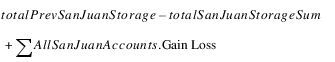 The total Gain/Loss allocated to San Juan storage accounts is the difference between the Present Condition Loss and the PreReservoir Condition Loss. A positive value for each of these components represents a loss. In the Gain Loss slot on each account, a positive value represents a gain, and a negative value represents a loss. Thus the negative of the difference is taken before distributing the loss to the Gain Loss slot. The loss is distributed based on the contributing percentage of the total storage at the end of the previous timestep. If the total San Juan storage at the end of the previous timestep was zero, then the Gain Loss is zero for all accounts.