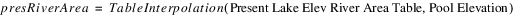 Present Lake Elev River Area Table