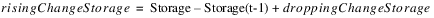 If the reservoir elevation was increasing or if the reservoir was spilling, the change in storage is counted as risingChangeStorage otherwise it is droppingChangeStorage.