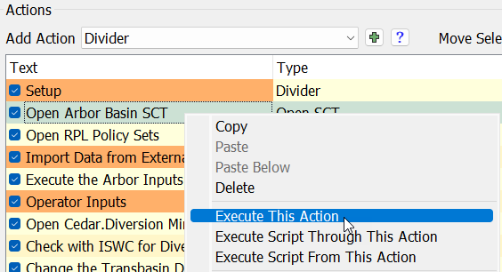 • Use the Execute This Action context menus to execute a single action.
