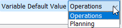 • Variable Default Value - The default value of the variable on the Script Dashboard. Select the default value from the list of values specified above. In the screenshot, Operations will be the default value.