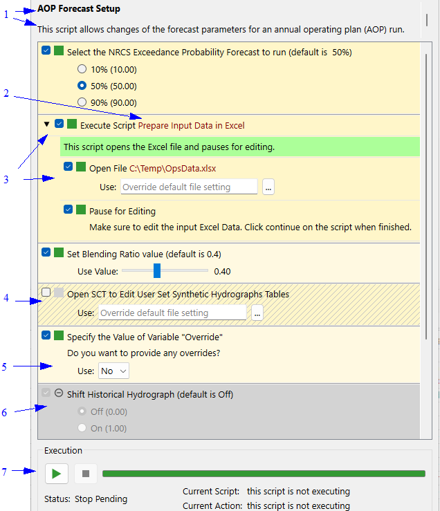 7. To run the entire script, specify any desired override values (where configured) in the Script Dashboard and then select the