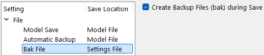 A new setting was added to the Settings Manager to control whether a backup (.bak) file gets created the first time a model is saved during a RiverWare session. The option is enabled by default to maintain current behavior. Uncheck the setting to not create the bak files.