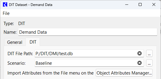 The DIT Dataset allows direct connections to import data from the Demand Input Tool (DIT) SQLite database. For more information on this tool, see the DIT web site.