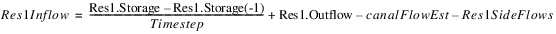 If not known, then Res1.Outflow must be known and Res1.Storage must be input (or Res1.Pool Elevation is input and thus storage is known). Then Res1.Inflow is calculated from the mass balance: