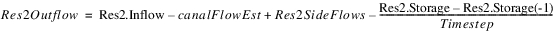 If not known, then Res2.Inflow must be known, and the outflow is either a function of maximum outflow or mass balance. If Res2.Outflow is flagged Max Capacity (M), then Res2Outflow is: