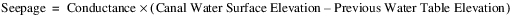 Information: Seepage is computed based on the difference between the current canal water surface elevation and the previous water table elevation