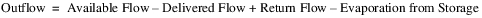 If a method is selected in the Canal Storage category, the change in storage is also removed from in the Outflow calculation, as follows: