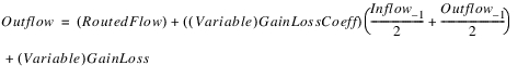 This method applies the (Variable) GainLoss Coeff to the average of the previous timestep’s inflow and outflow. This is done in order to allow the Muskingum-Cunge and the Muskingum method to use the same equations for loss.