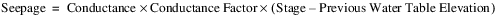 Information: Seepage is computed based on the difference between the current river stage and the previous groundwater elevation
