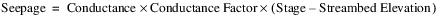 Note:  The preceding equations use the water table elevation at the previous timestep. This simplification is done to avoid iteration problems that would result if the current groundwater elevation was used. A positive seepage is limited to be less than or equal to the Inflow to the reach.