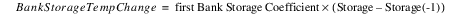 In this case, Storage - Storage(-1) is negative so the BankStorageTempChange will also be negative.
