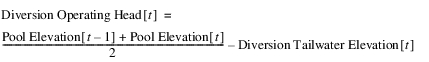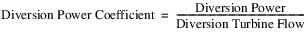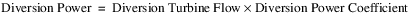 Otherwise, Diversion Power is calculated by a 3‑D interpolation on the Diversion Power Table using Diversion Operating Head and Diversion Turbine Flow, and Diversion Power Coefficient is calculated as follows: