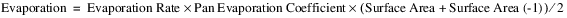 If Evaporation is not specified, the following equation is used to compute the volume of water that evaporated from the Reservoir over the timestep: