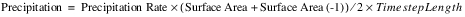 The volume of Precipitation that occurred over the timestep is then calculated using the following equation: