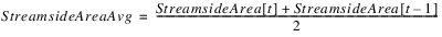 The method will be passed in a current estimate of Surface Area and Average Surface Area. The latter is an average of the current estimate and previous timestep’s value. In this description, it is called SurfaceAreaAvg. Similarly, StreamsideAreaAvg, RiverAreaAvg, TerraceAreaAvg and RemainingAreaAvg are all averages of the current and previous values.