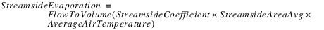 This simulates that the streamside evaporation that would have occurred without the reservoir is a function of area, coefficient, and average air temperature.