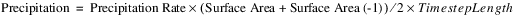The precipitation flow rate over the timestep is calculated as shown in the following equation: