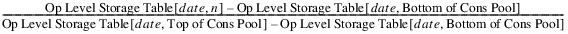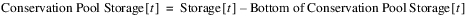 At the beginning of run, the Conservation Pool Storage Fraction is populated as follows: For each date (row) and each level, n, (column), the equation to compute the fraction:
