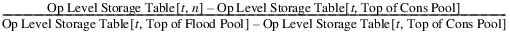 At the beginning of run, the Conservation Pool Storage Fraction is populated as described above. Then, the Flood Pool Storage Fraction is populated as follows: For each date (row) and each level, n, (column), the equation to compute the fraction is: