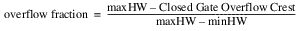 Information: This value is computed by the regulated spill method as the value found on the Closed Gate Overflow Table multiplied by the Closed Gate Overflow Capacity Fraction