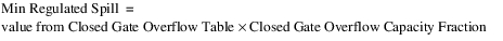 When allocating spills to various structures, the Closed Gate Overflow must occur at the same time as unregulated spills; that is, before regulated or bypass. Then any remaining outflow can go through the regulated and or bypass spill structures. Therefore, the minimum regulated spill is computed as follows: