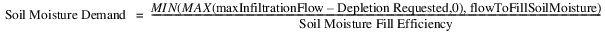 Compute the soil moisture demand, representing the physical constraints on refilling the soil moisture from diverted surface water, as follows: