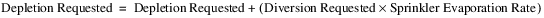The sprinkler evaporation is applied to the Depletion Requested after the Diversion Requested slot has been set. The initial Depletion Requested is adjusted as follows: