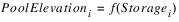 Pool Elevation is calculated by interpolation on the reservoir Elevation Volume Table.